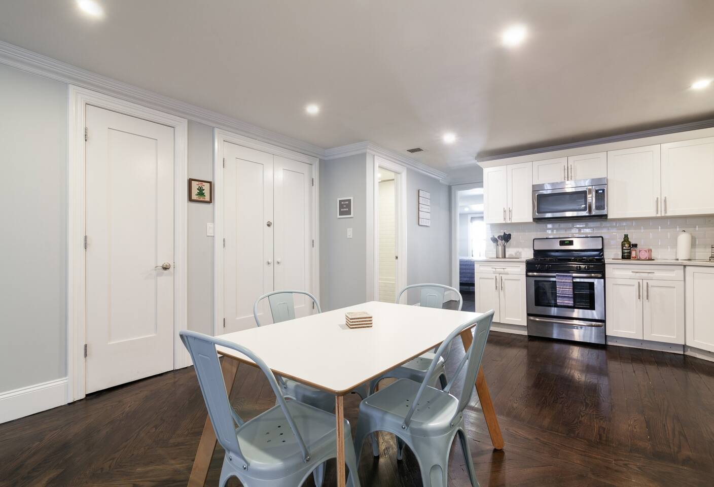 - Full kitchen with brand new appliances, including a microwave, dishwasher, stove/oven, refrigerator/freezer, and dishwasher, electric tea kettle, chemex coffee maker.